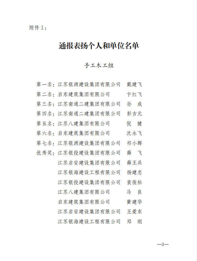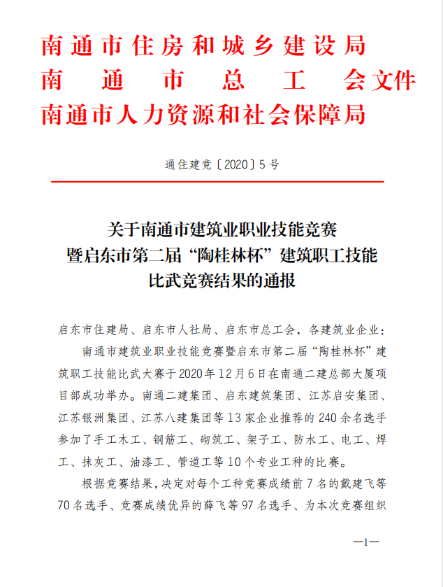 上一页: 转发《关于表彰启东市首届“陶桂林杯”建筑职工技能比武大赛获奖个人和获奖单位的决定》